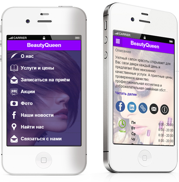 Мобильный сайт для салонов красоты Поднимайте свой бизнес на новые высоты! Привлекайте новых клиентов и увеличьте вашу прибыль путем интеграции электронной коммерции, купонов, каталога услуг, и многого другого.